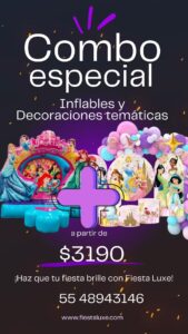 🎉 ¡Hola! Bienvenido a Fiesta Luxe 🎈. ¡Estamos emocionados de ayudarte a crear la fiesta temática de tus sueños! 🌈✨ ¿Buscas inflables temáticos, decoración mágica o una experiencia inolvidable? ¡Te ayudamos a hacer realidad tu evento perfecto! 👇🏼